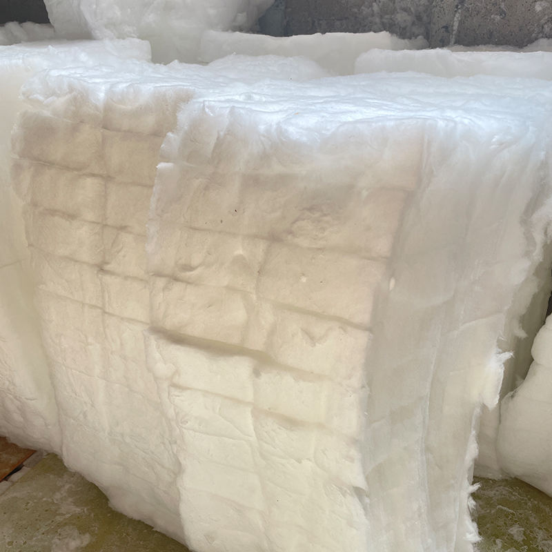 teneur en alumine (AlzOs) de 72 % et teneur en silice (SiOz) de 2 896. Le processus de production se déroule selon les étapes suivantes : tout d'abord, mélanger une certaine quantité d'aluminium et de silicium solubles pour obtenir un fluide colloïdal avec une certaine adhésivité, puis extraire le fluide en suivant le processus d'étirage centrifuge régulier, et enfin le transformer sous forme cristalline en chauffant à haute température pour obtenir les fibres de mullite. Le taux de conduction du PMF est 1/6 de celui des briques réfractaires moyennes, alors que l'encombrement n'est que 1/25 de celui de ces dernières. La fibre de coton produite, encore dispersée, peut être utilisée comme matériau de rembourrage pour les couches d'isolation à haute température. Après le traitement sous vide humide, le coton dispersé peut être transformé en d'autres produits de la série PMF, comme des blocs, des nattes,